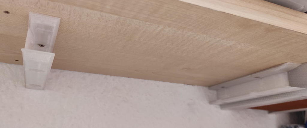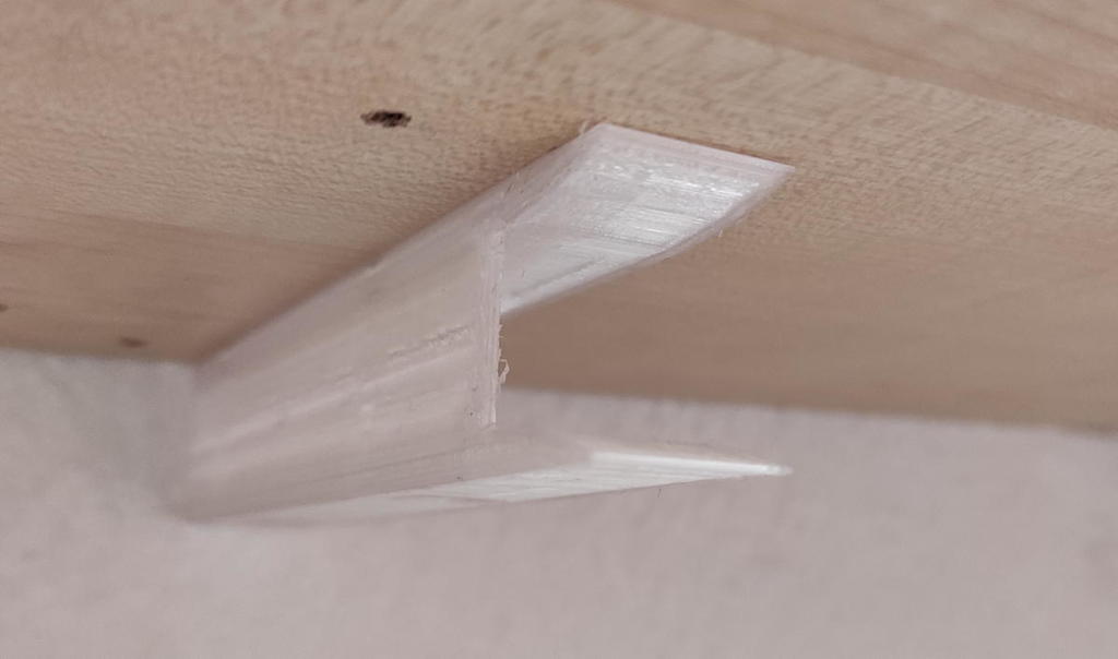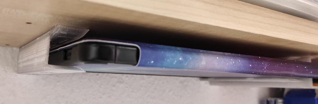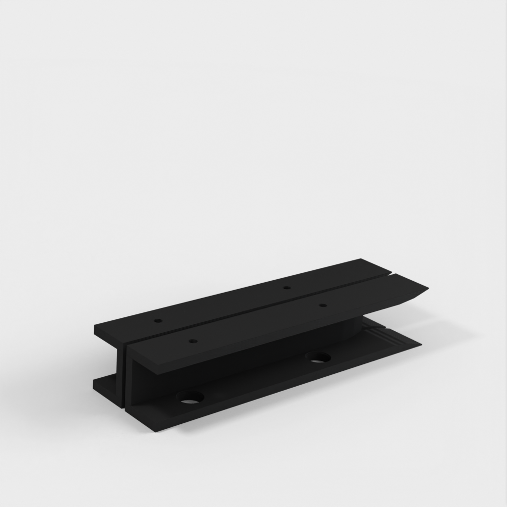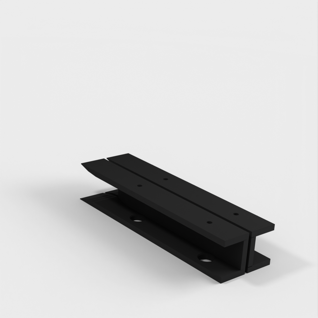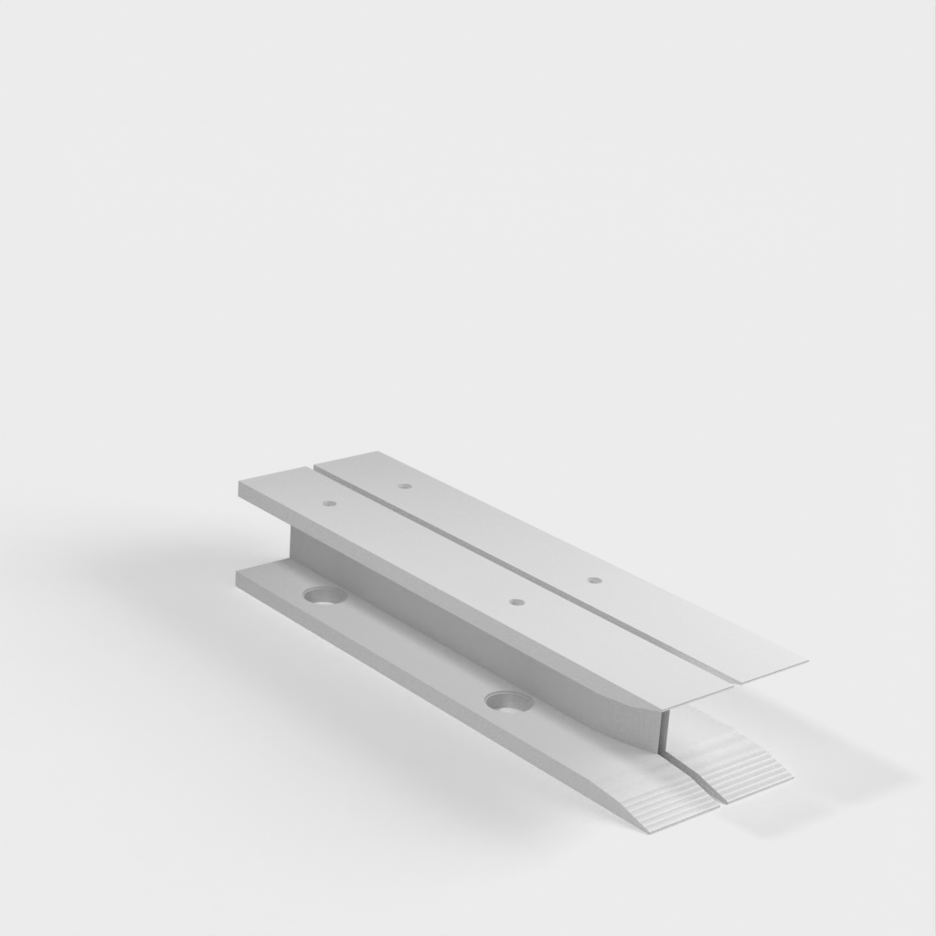 De ophanging bestaat uit twee rails die onder je bureau worden gemonteerd met 2x M3 schroeven. De ophanging zelf is uitgevoerd als twee parallelle torens om de stabiliteit te verhogen.