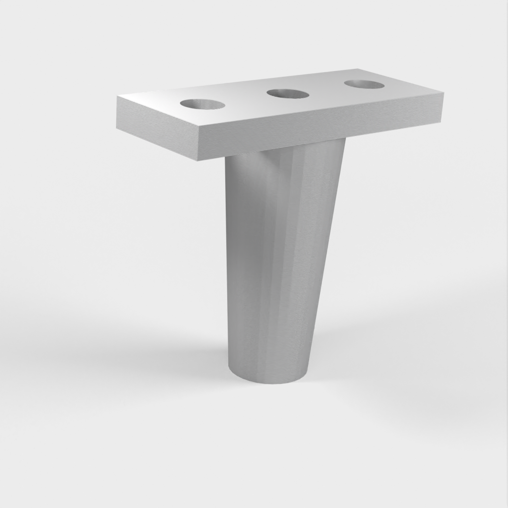 De hoogte van het afstandsstuk is 3 cm. De afmetingen van de voet zijn 30x12x4mm. Er zijn 3 gaten voor 4 mm schroeven.