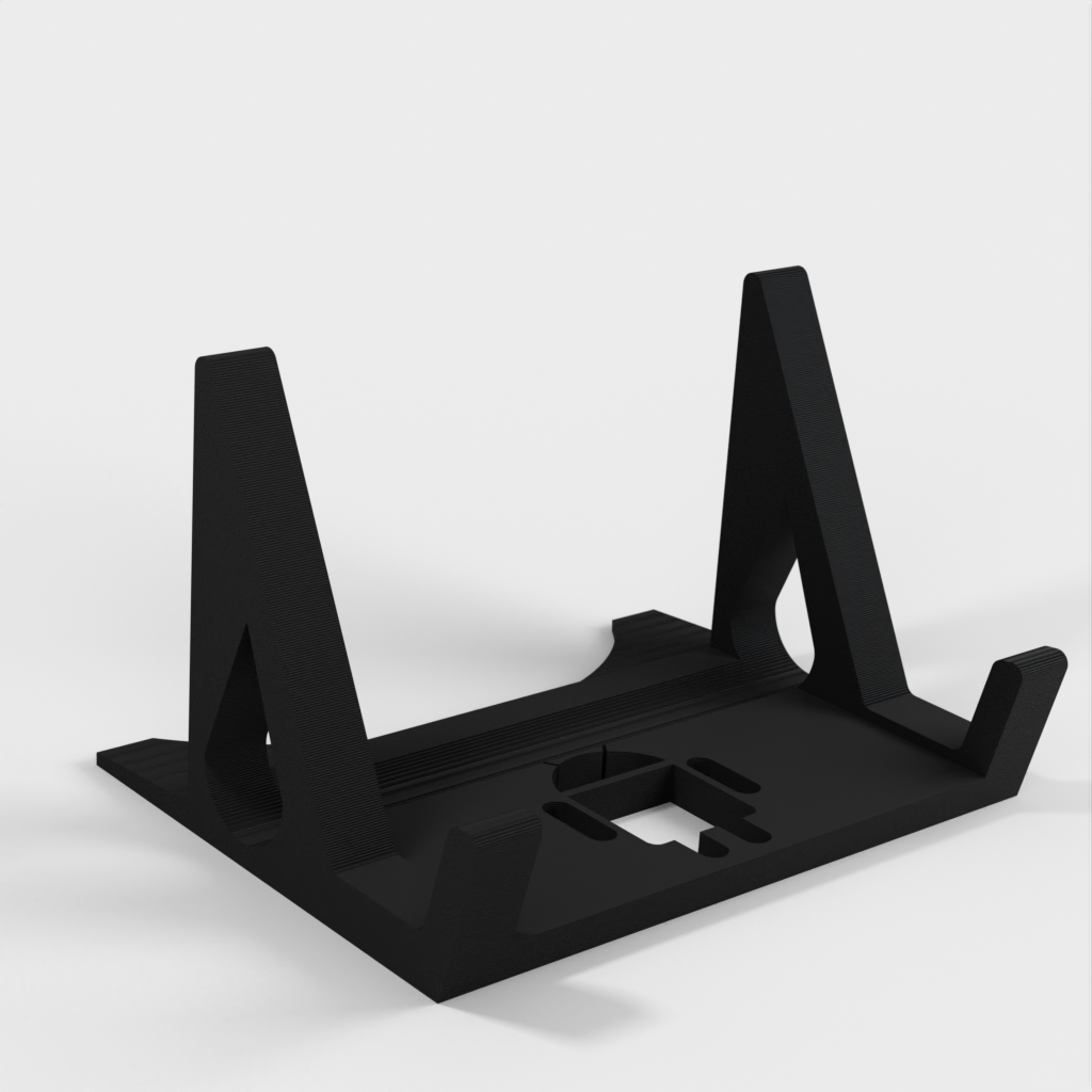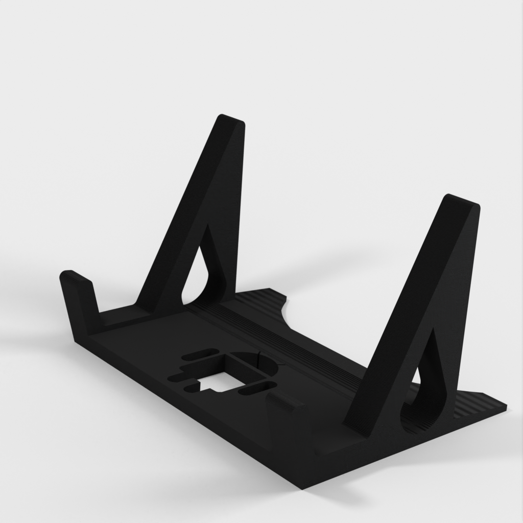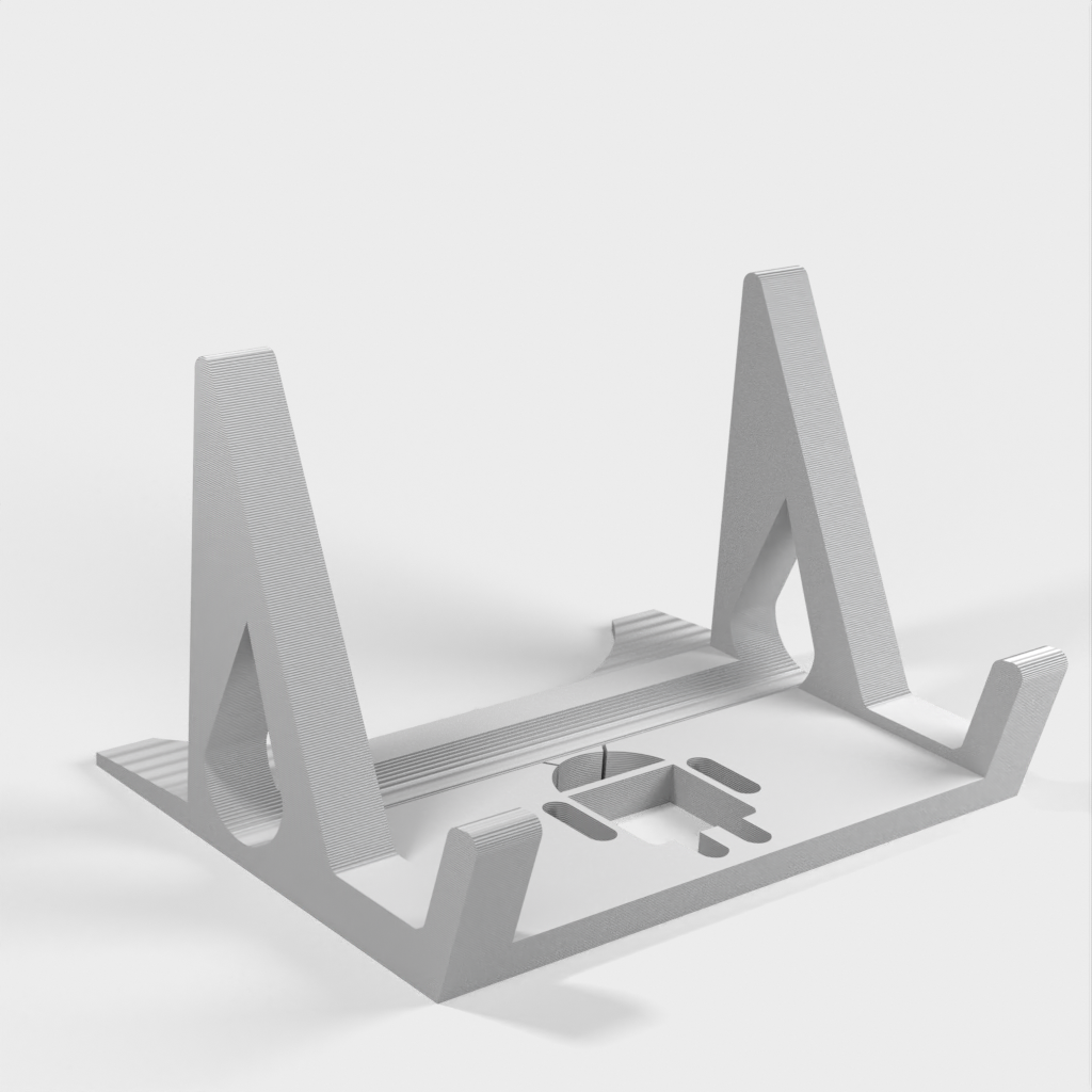 Universele standaard voor Android mobiele telefoons - geschikt voor zowel verticale als horizontale plaatsing van je telefoon. Nieuwe versie met verlengde basis om te voorkomen dat hij valt bij telefoons groter dan 3,5' (getest met 4' en 4,5' telefoons). Het heeft ook een rail over de hele breedte voor betere beveiliging tegen telefoons die ertussen glijden. Er is nu ook een model voor een 10' tablet beschikbaar.