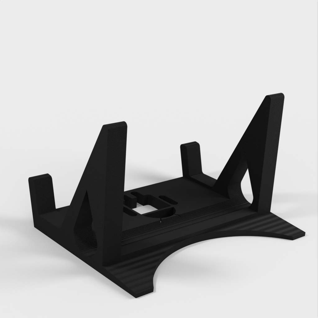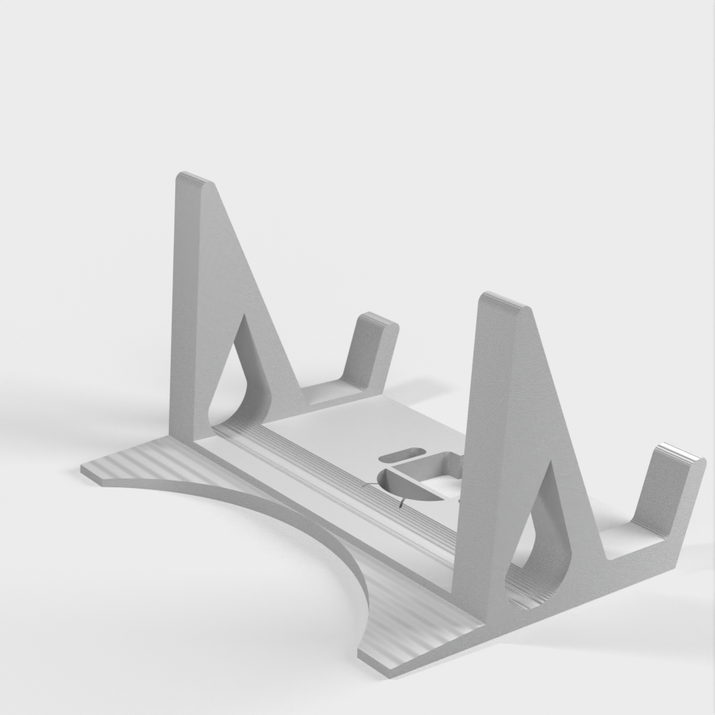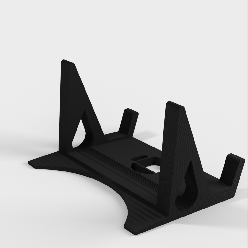 Universele standaard voor Android mobiele telefoons - geschikt voor zowel verticale als horizontale plaatsing van je telefoon. Nieuwe versie met verlengde basis om te voorkomen dat hij valt bij telefoons groter dan 3,5' (getest met 4' en 4,5' telefoons). Het heeft ook een rail over de hele breedte voor betere beveiliging tegen telefoons die ertussen glijden. Er is nu ook een model voor een 10' tablet beschikbaar.