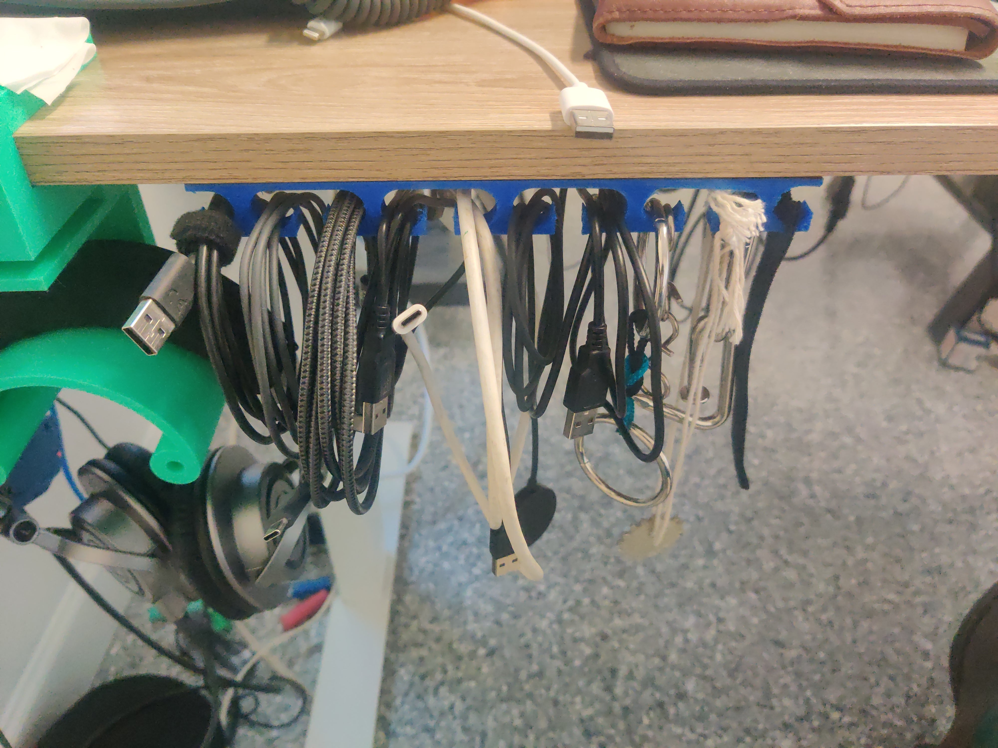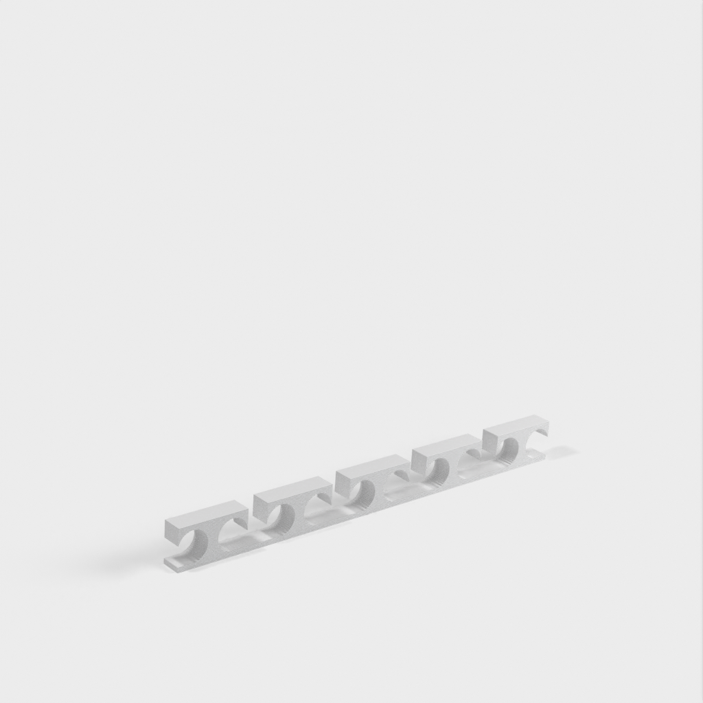 Dit is een kleine kabelopberger die ik heb gemaakt om de USB-kabels netjes opgerold op mijn bureau te houden. Ik heb het onder mijn bureau bevestigd met dubbelzijdige tape. Ik heb zelf 10mm Tesa tape gebruikt, maar 3M tape kan ook. Dit product helpt je om je omgeving netjes en opgeruimd te houden door je USB-kabels eenvoudig en efficiënt te ordenen.