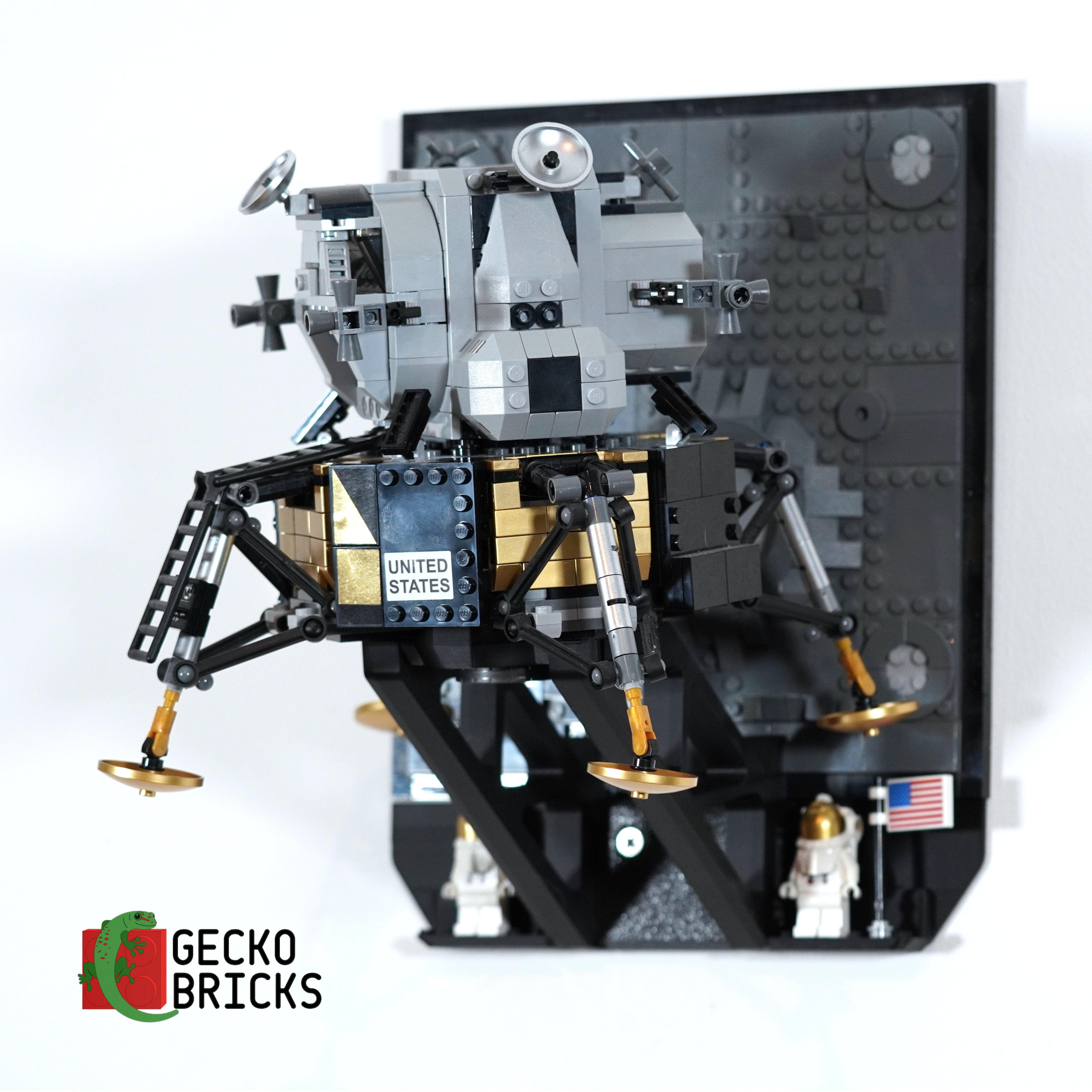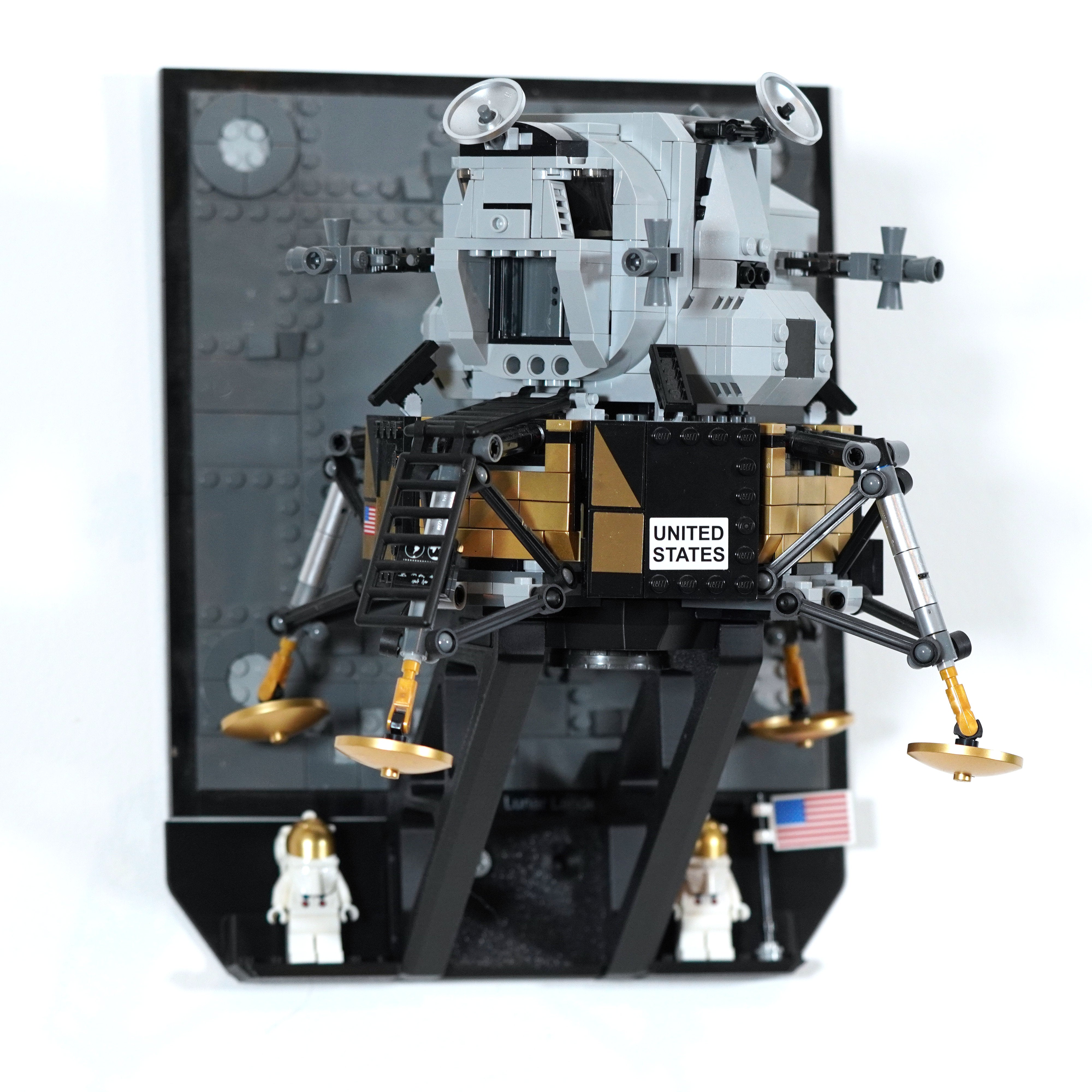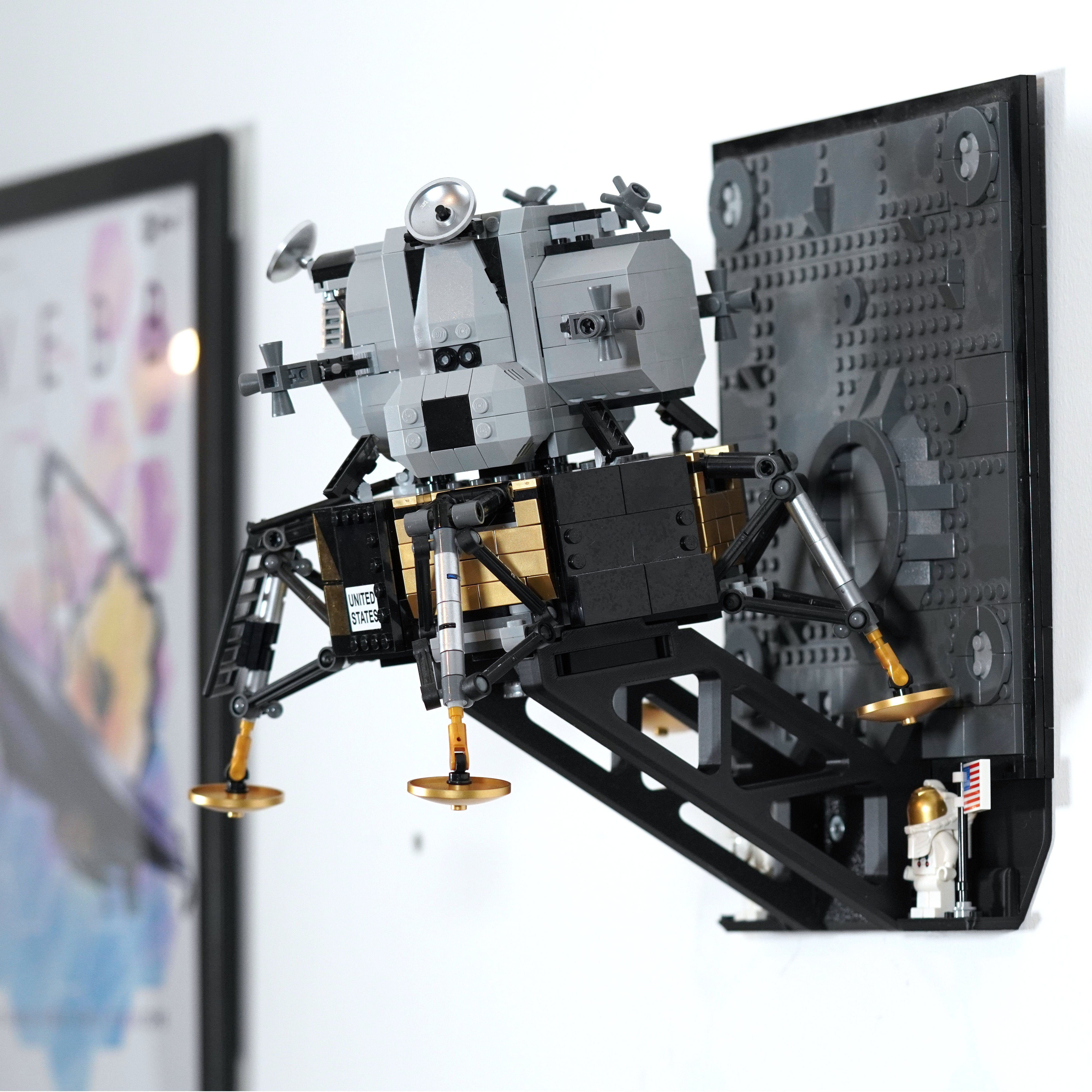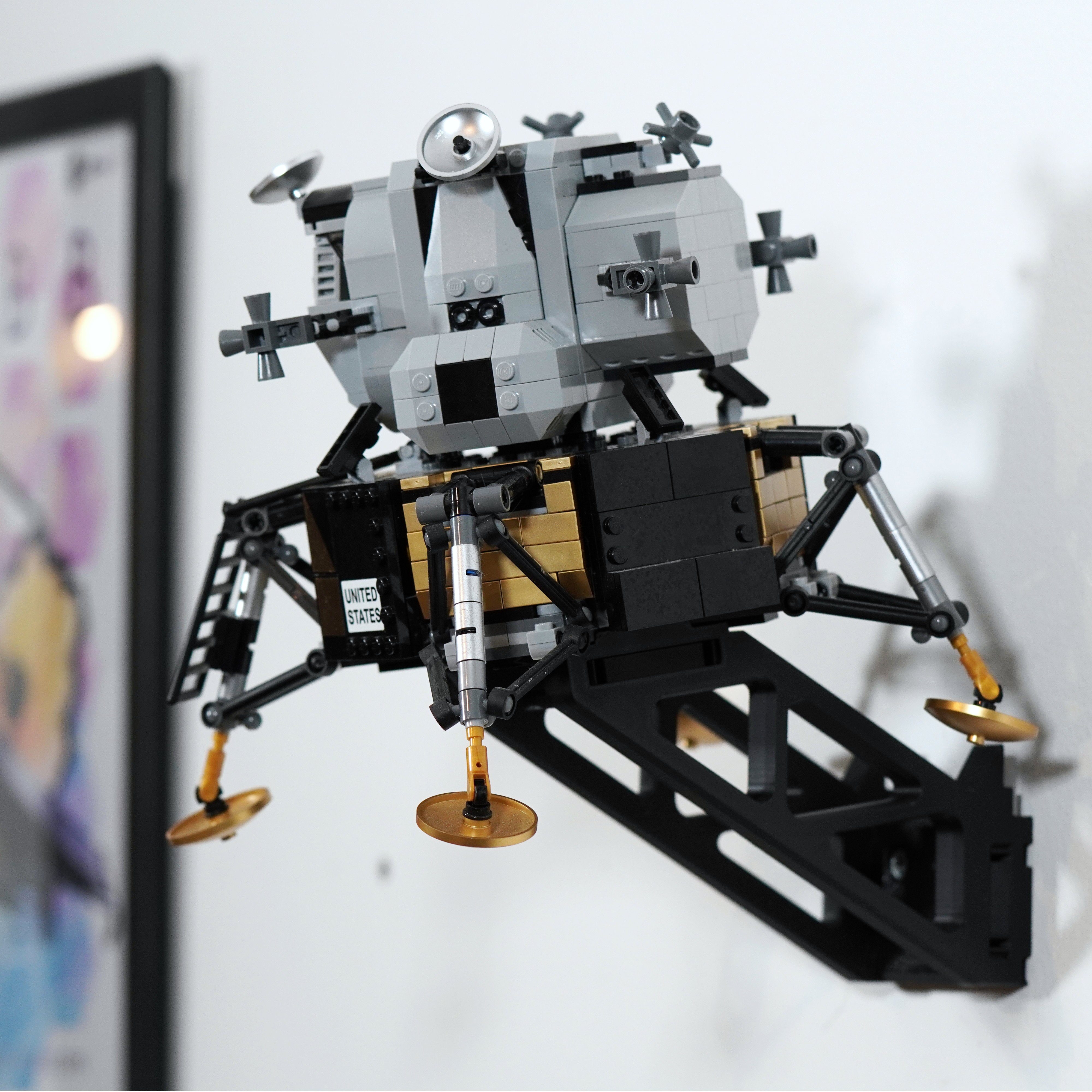 Deze wandbeugel stelt u in staat om uw Lunar Lander tentoon te stellen met of zonder het maanoppervlak en minifiguren. De oplossing zorgt voor een stabiele montage waarbij het model gemakkelijk weer kan worden verwijderd. De set wordt eenvoudig aan de muur bevestigd en zorgt voor een elegante presentatie van uw ruimtevaartset.
