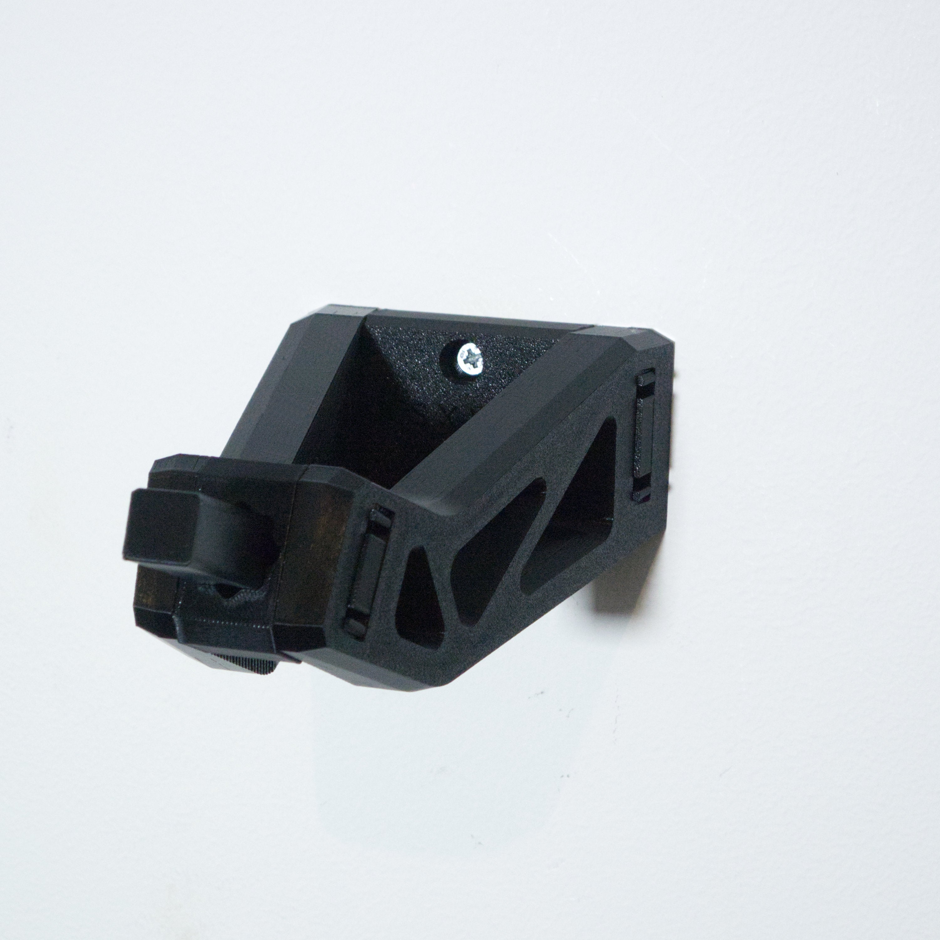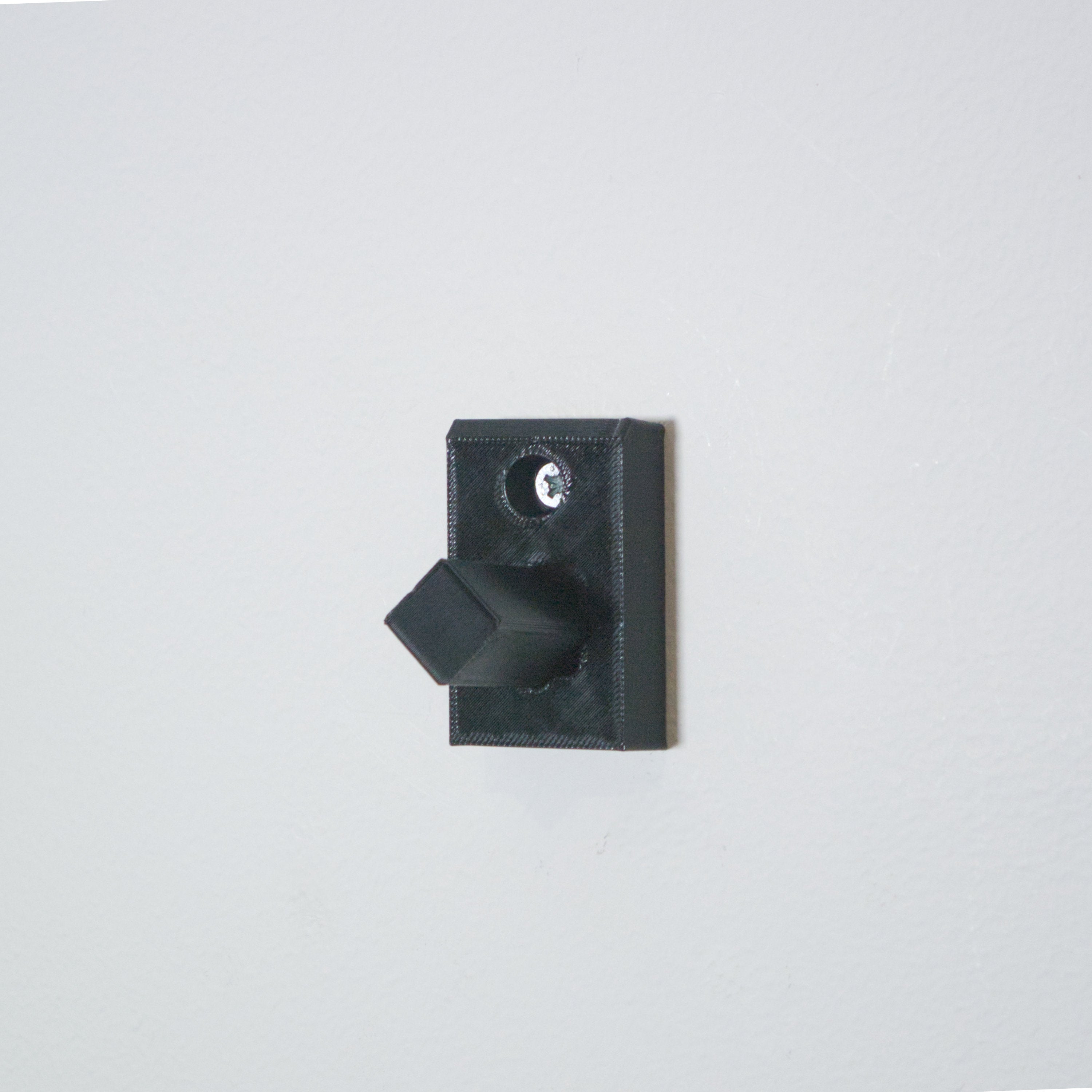- Wordt bevestigd met één enkele schroef en een 3M command strip om rotatie te voorkomen.
