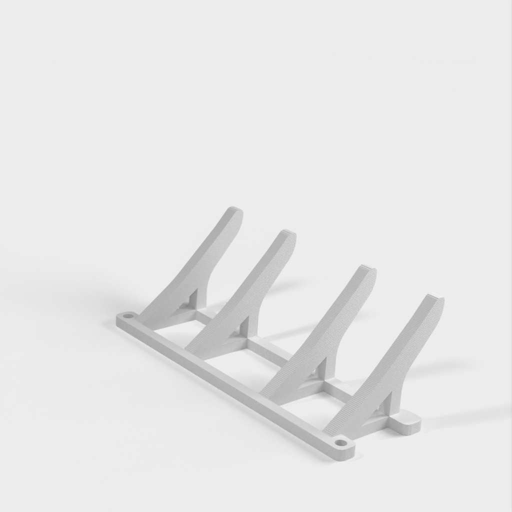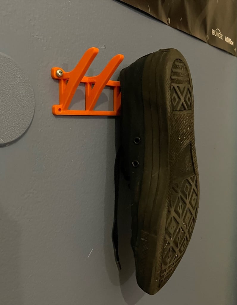 Dit is een praktische wandhouder, ontworpen om schoenen aan de muur te hangen. Deze houder kan eenvoudig rechtstreeks aan de muur worden bevestigd met schroeven. Wanneer de schoenen zijn gemonteerd, geeft dit een opgeruimde en georganiseerde uitstraling aan uw ruimte.
