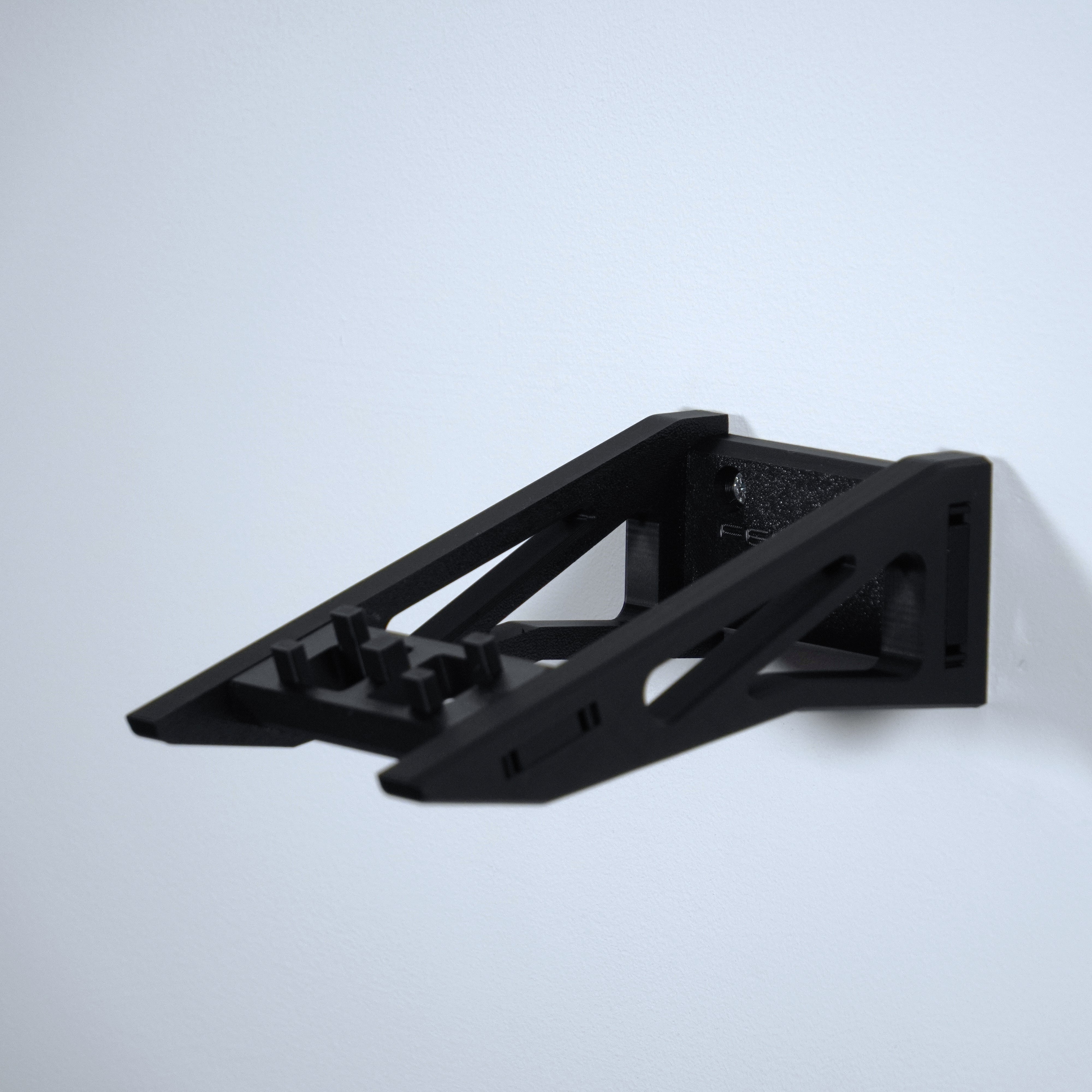 Fremvis din LEGO Technic Ferrari F1-model med dette funktionelle vægophæng. Løsningen giver mulighed for at montere bilen vinklet, vandret eller lodret, så den passer perfekt ind i indretningen. Beslaget holder modellen sikkert på plads og gør det samtidig let at tage den ned igen.