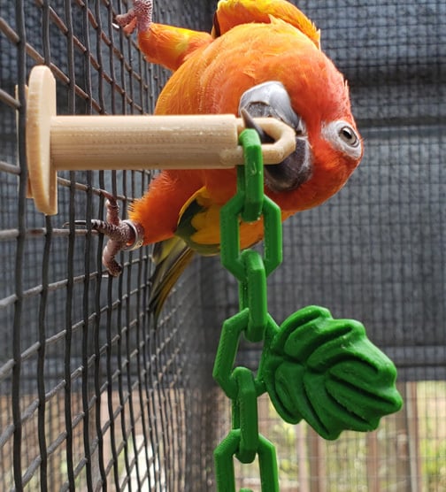 Het speelgoed combineert een robuuste ketting met charmante wijnranken die de aandacht van de vogels trekken. De felle kleur maakt het voor de vogel gemakkelijk te zien en de unieke vorm stimuleert hun natuurlijke nieuwsgierigheid en speelsheid.
