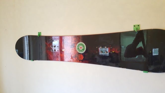 Dit zijn onderdelen om een snowboard aan de muur te bevestigen. De bovenste delen kunnen worden verplaatst zodat ze geopend kunnen worden. Het snowboard kan eenvoudig in de houders worden geplaatst, waardoor uw muur of werkplaats opgeruimder wordt.
