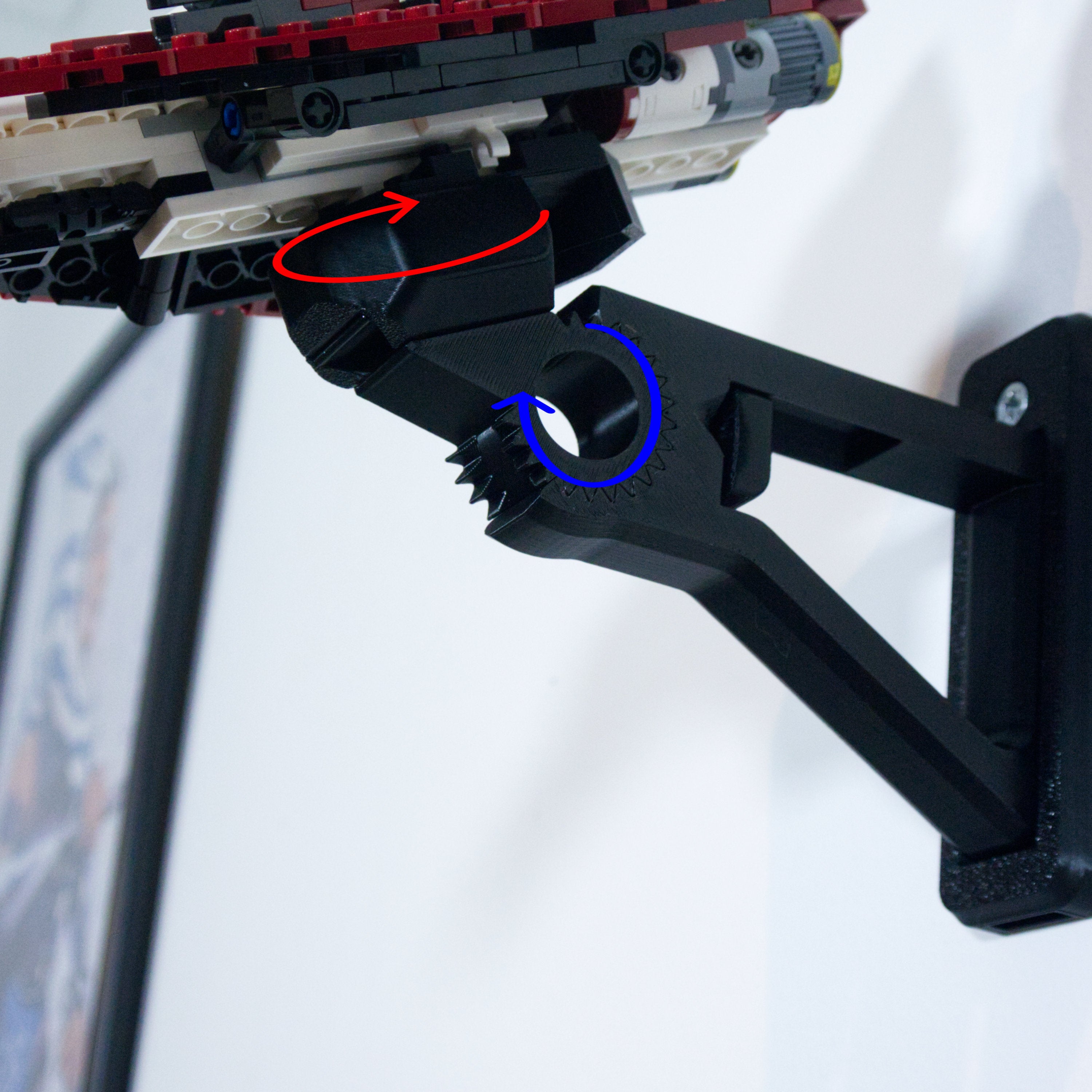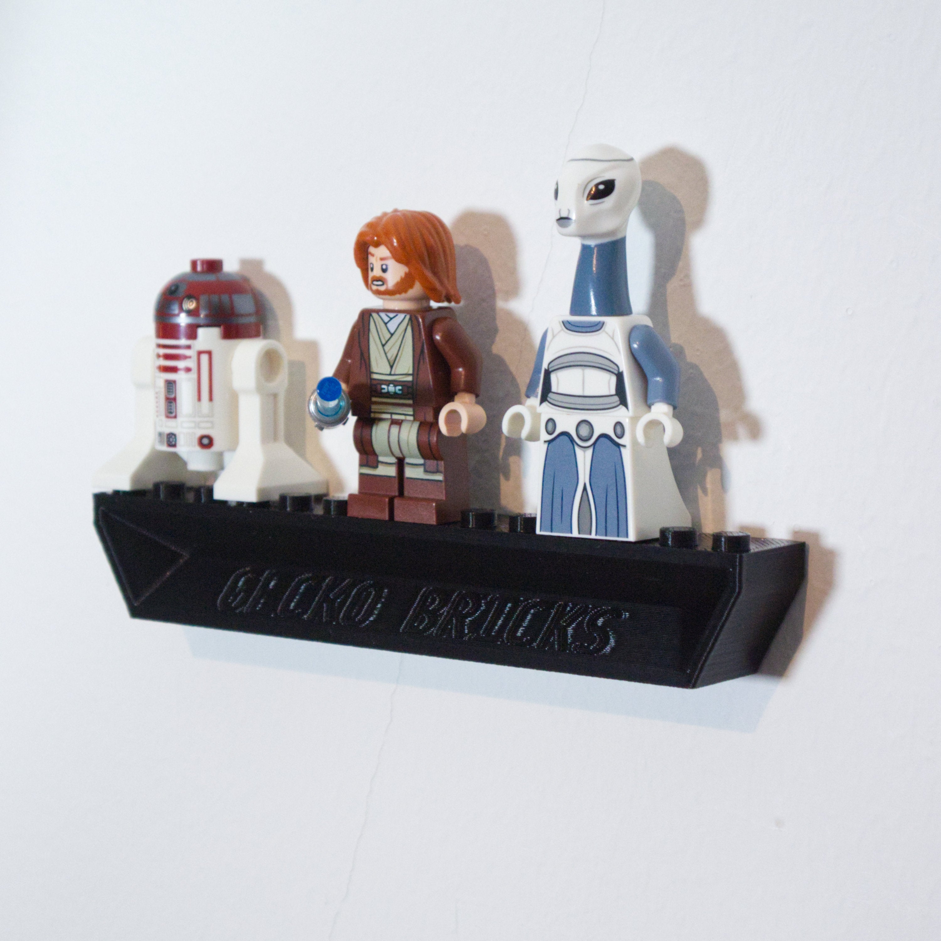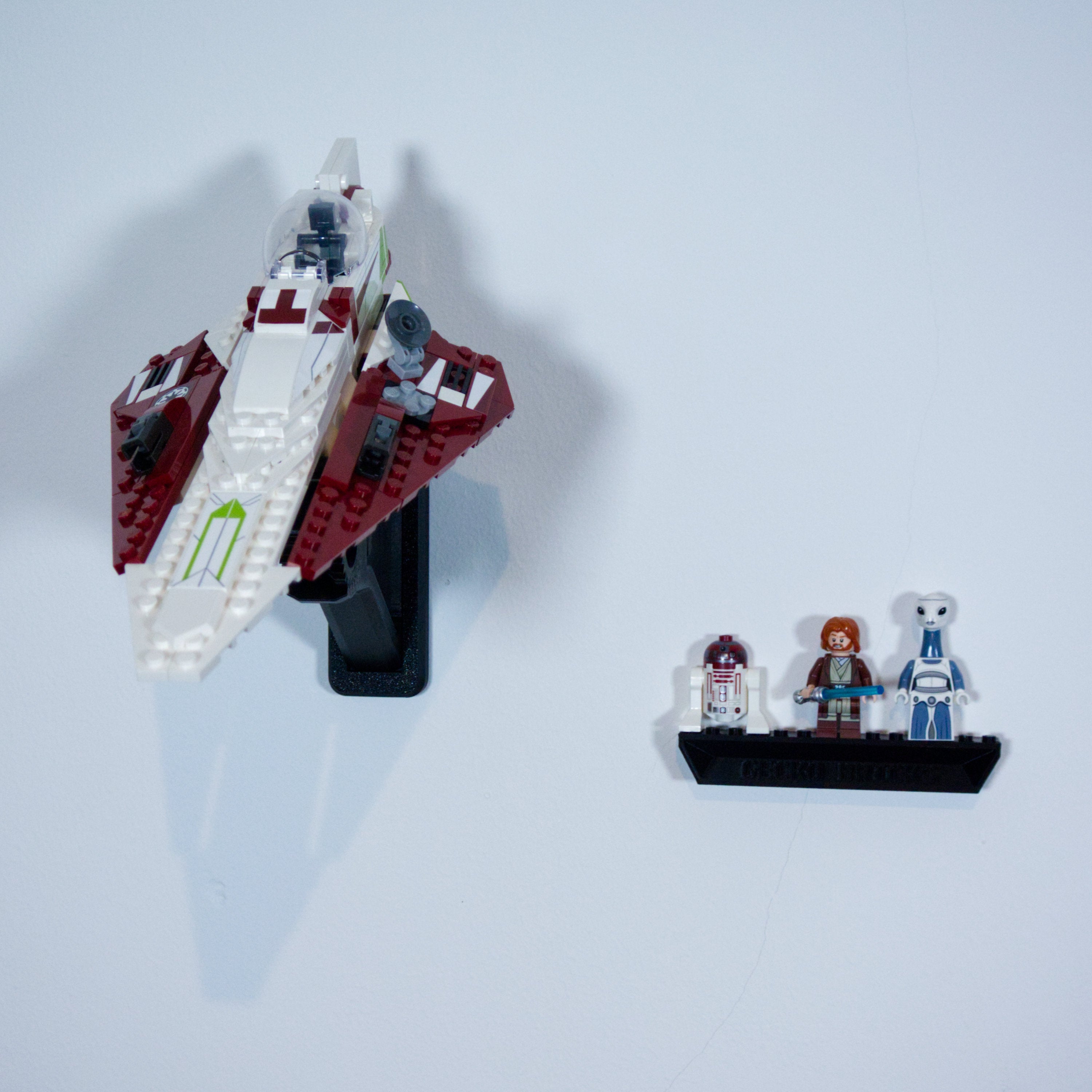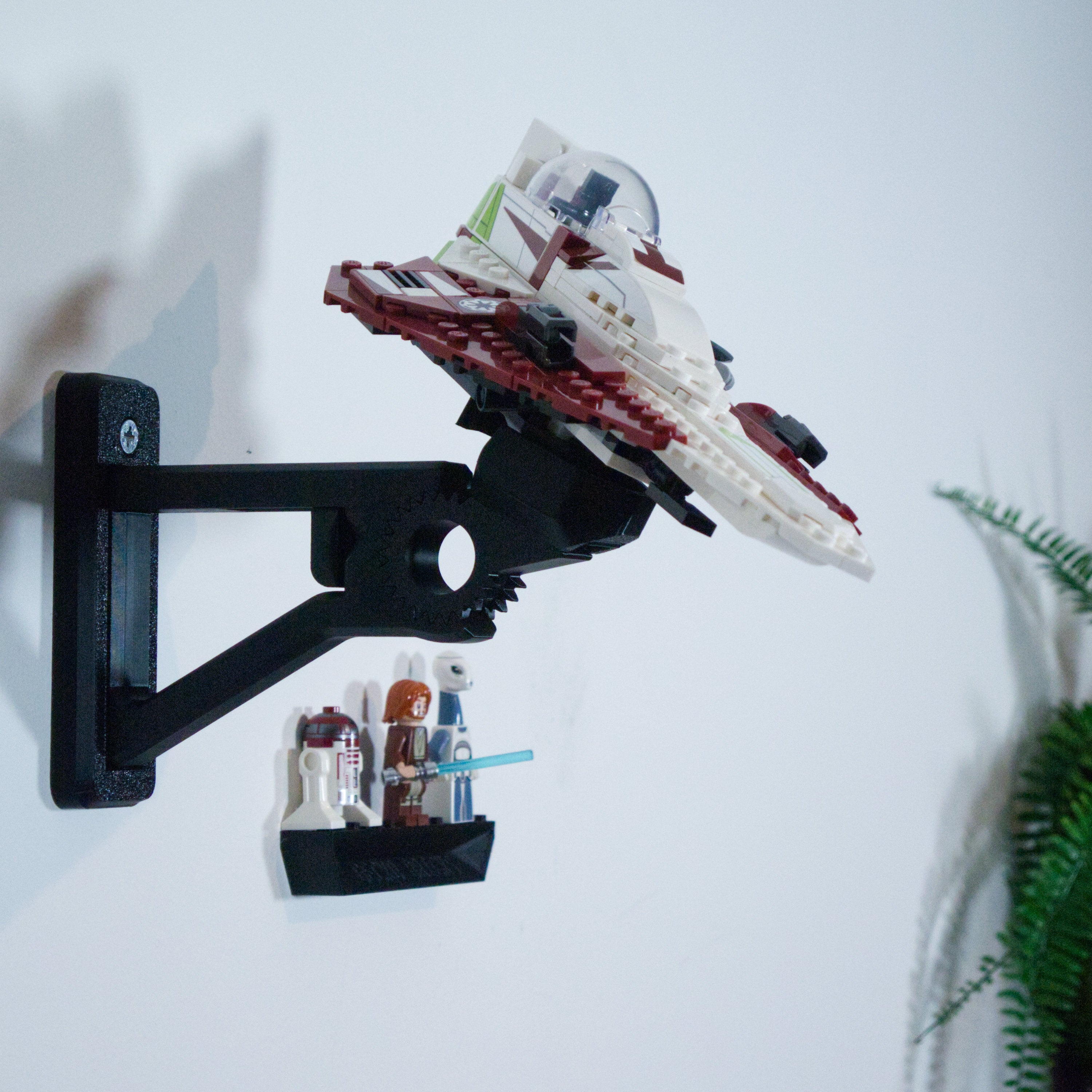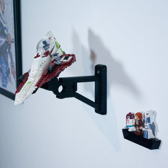 Deze verstelbare wandbeugel maakt het mogelijk om uw Star Wars Starfighter in verschillende hoeken tentoon te stellen. De beugel is ontworpen voor eenvoudige montage en snelle verwijdering van het model. Er wordt een aparte houder voor minifiguren meegeleverd, die veilig en voorzichtig met een 3M-strip wordt bevestigd.