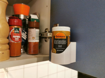 De kruidenhouder kan eenvoudig aan een muur of aan de binnenkant van een kastdeur worden gemonteerd, waardoor waardevolle ruimte op het aanrecht of in de kasten vrijkomt. De slimme constructie zorgt voor een kleine afstand tussen de glazen en de muur, waardoor het gemakkelijk is om elk kruidenpotje naar behoefte eruit te halen.