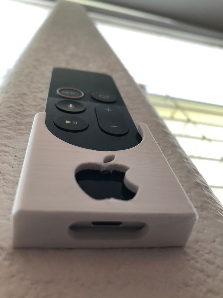 Apple TV-afstandsbedieningshouder voor gebruik met "Seri Remote". Het geeft je .02" speling aan de voor- en achterkant. Er is ook een opening voor de oplaadkabel aan de onderkant. Deze houder zorgt ervoor dat de afstandsbediening altijd op één plek ligt, zodat je hem nooit meer kwijtraakt. Hij kan eenvoudig aan de muur worden bevestigd en het compacte ontwerp zorgt ervoor dat hij niet veel ruimte inneemt.