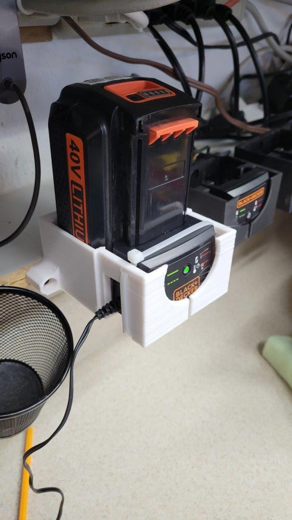Eenvoudige en stijlvolle wandhouder voor een Black & Decker 40V-batterij en -oplader. Het past gemakkelijk in elke werkplaats en uw oplader past perfect in de houder, waardoor uw batterij klaar is voor gebruik.