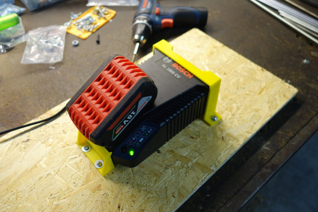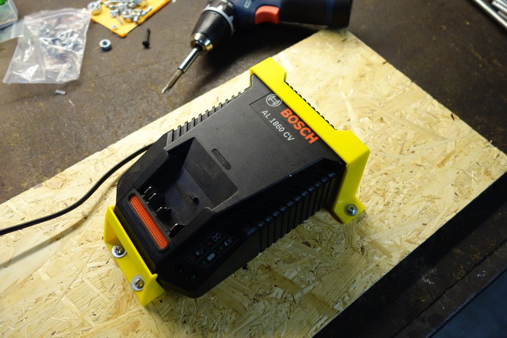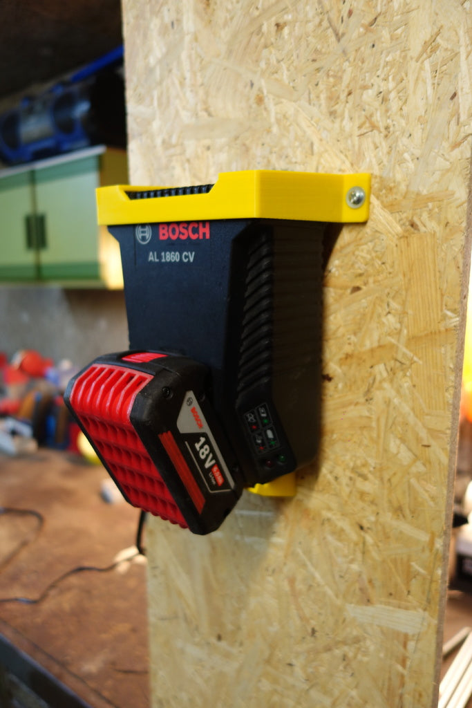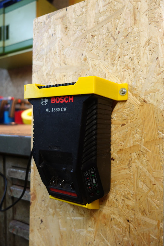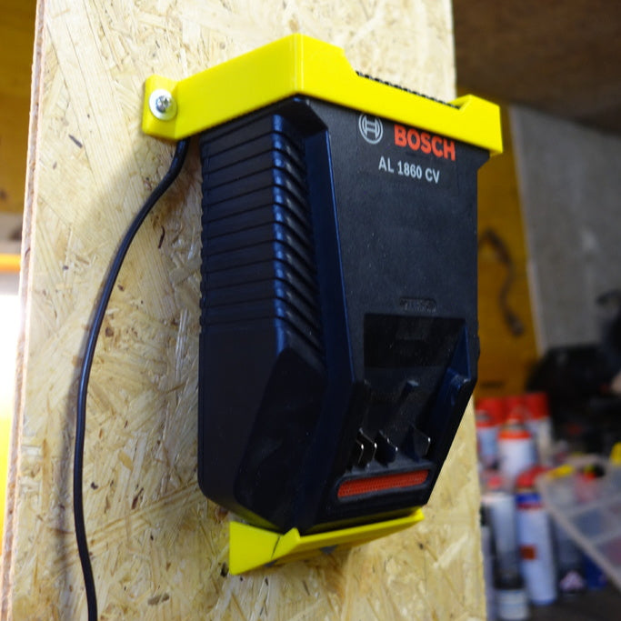 Deze muurbeugel is ontworpen voor mijn Bosch AL 1860 CV-lader (BC 630 US-versie), zodat ik mijn lader aan de muur kan bevestigen. Hierdoor neemt hij minder ruimte in beslag op mijn bureau.