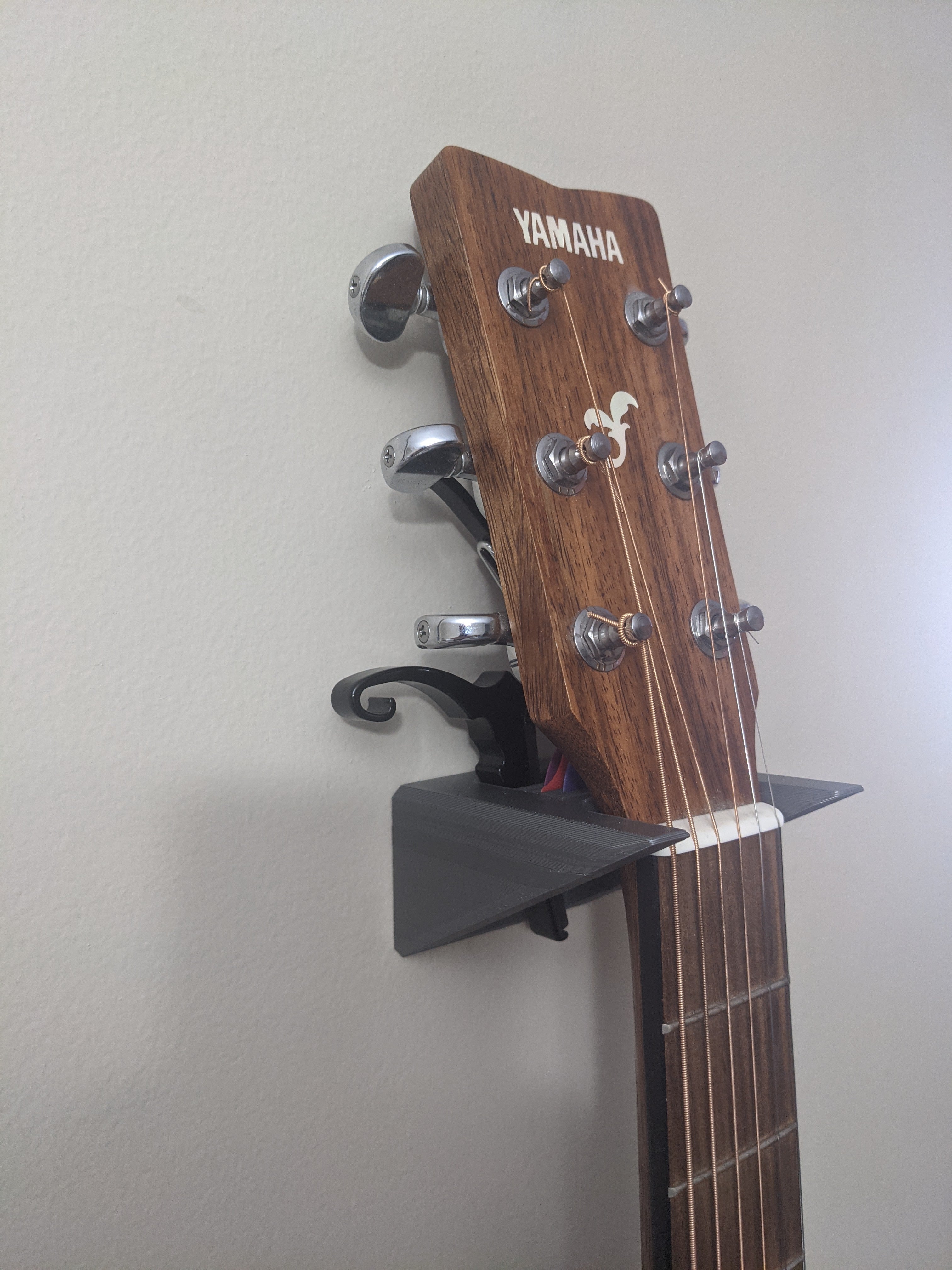 Deze slimme wandhouder biedt een praktische en stijlvolle manier om je gitaar op te bergen. Ontworpen om gitaren op ware grootte veilig en zeker vast te houden, helpt het om waardevolle vloerruimte vrij te maken, terwijl je instrument wordt tentoongesteld als een decoratief element in elke ruimte. Een geïntegreerde houder geeft je ook de mogelijkheid om kleine muziekaccessoires zoals je capo en plectrums gemakkelijk bij de hand te hebben.