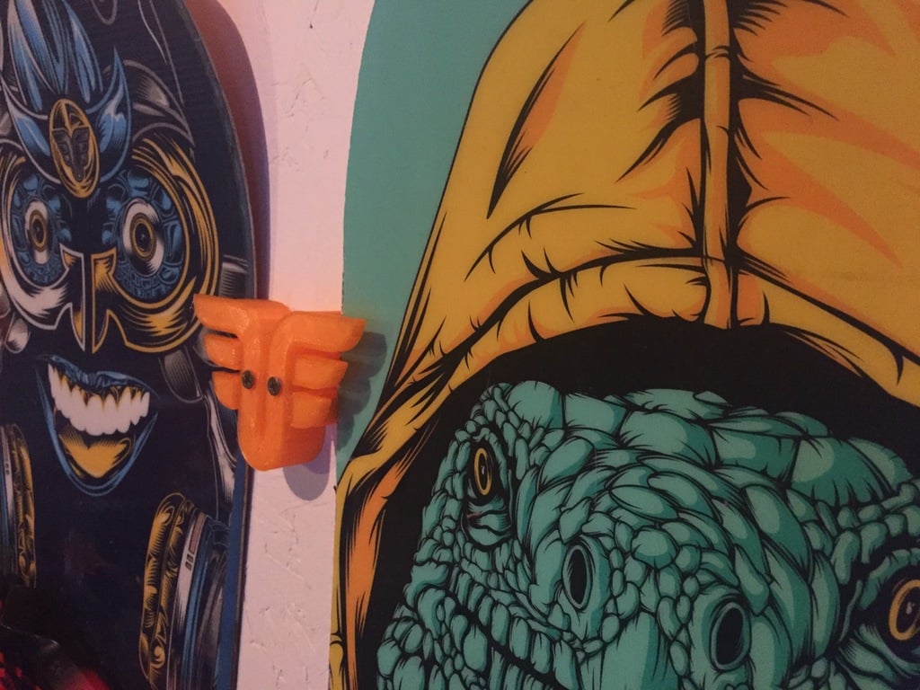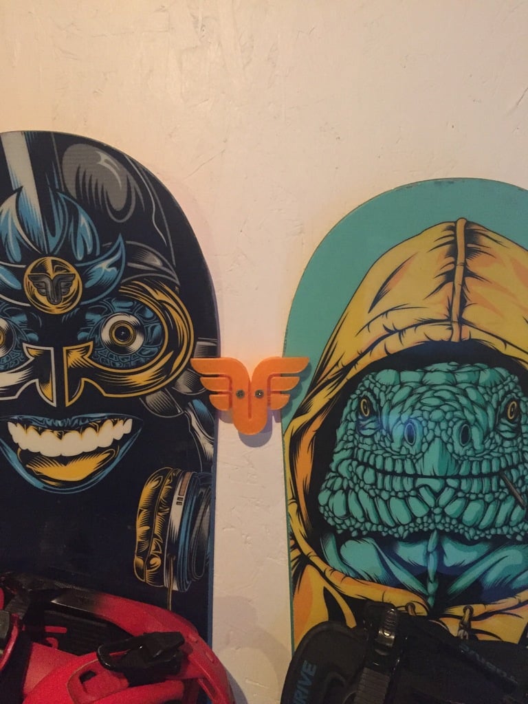 Wandmontage voor snowboard van Thrive Snowboards. Twee van deze kunnen worden gebruikt om een snowboard verticaal aan een muur te hangen. De perfecte manier om je snowboard op een veilige en stijlvolle manier op te bergen.