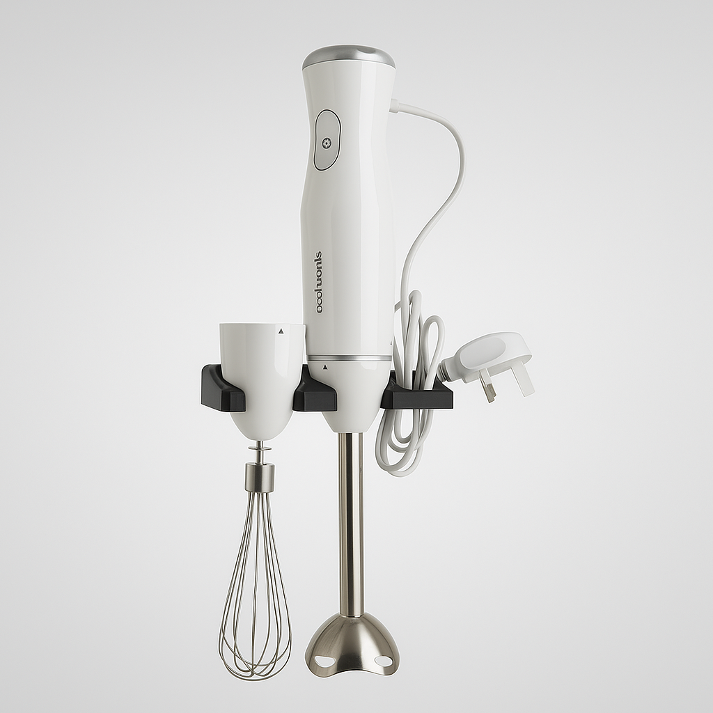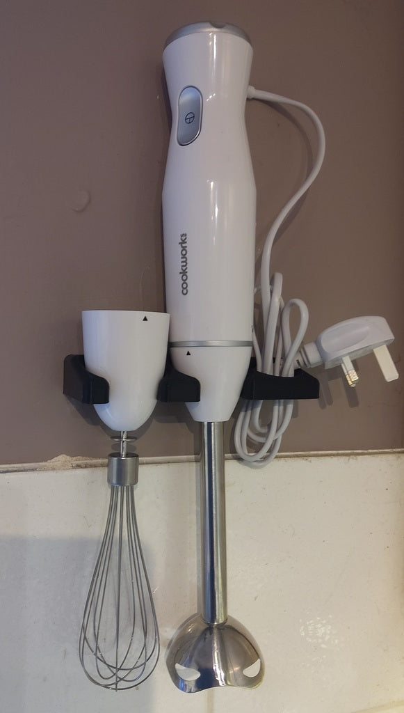 Of u nu romige soepen, verse smoothies of heerlijke sauzen maakt, uw staafmixer is altijd gemakkelijk toegankelijk. Hoewel de beugel oorspronkelijk is aangepast aan een 'Cookworks'-blender, is het ontwerp flexibel en kan hij mogelijk op een breed scala aan staafmixers op de markt passen, waardoor het een veelzijdige oplossing is voor diegenen die op zoek zijn naar praktische accessoires voor bijvoorbeeld Delonghi of vergelijkbare merken.