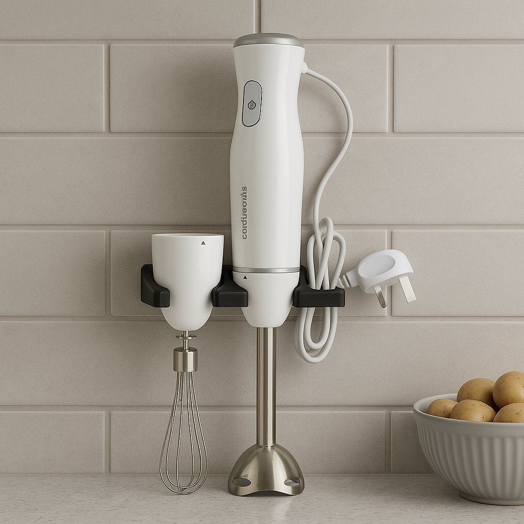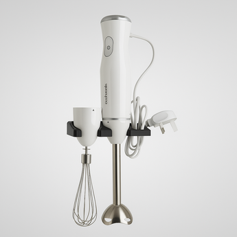Optimaliseer uw keukenruimte en houd de boel opgeruimd met deze slimme wandhouder voor uw staafmixer. Ontworpen om een opgeruimde en functionele omgeving te creëren, stelt deze houder u in staat om uw staafmixer, de accessoires en het snoer gemakkelijk op één plek op te bergen. Zo maakt u waardevolle kastruimte vrij en houdt u uw aanrecht vrij van rommel.