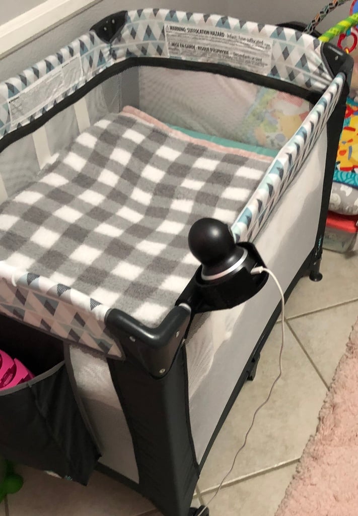 Wanneer het kind ouder wordt en het camera kan gaan bereiken, kan de houder eenvoudig worden verplaatst naar een gordijnroede of raamkozijn in de buurt van het bed. Dit zorgt voor een voortdurende discrete en veilige bewaking, zodat u gemoedsrust kunt hebben, wetende dat uw kind veilig is.