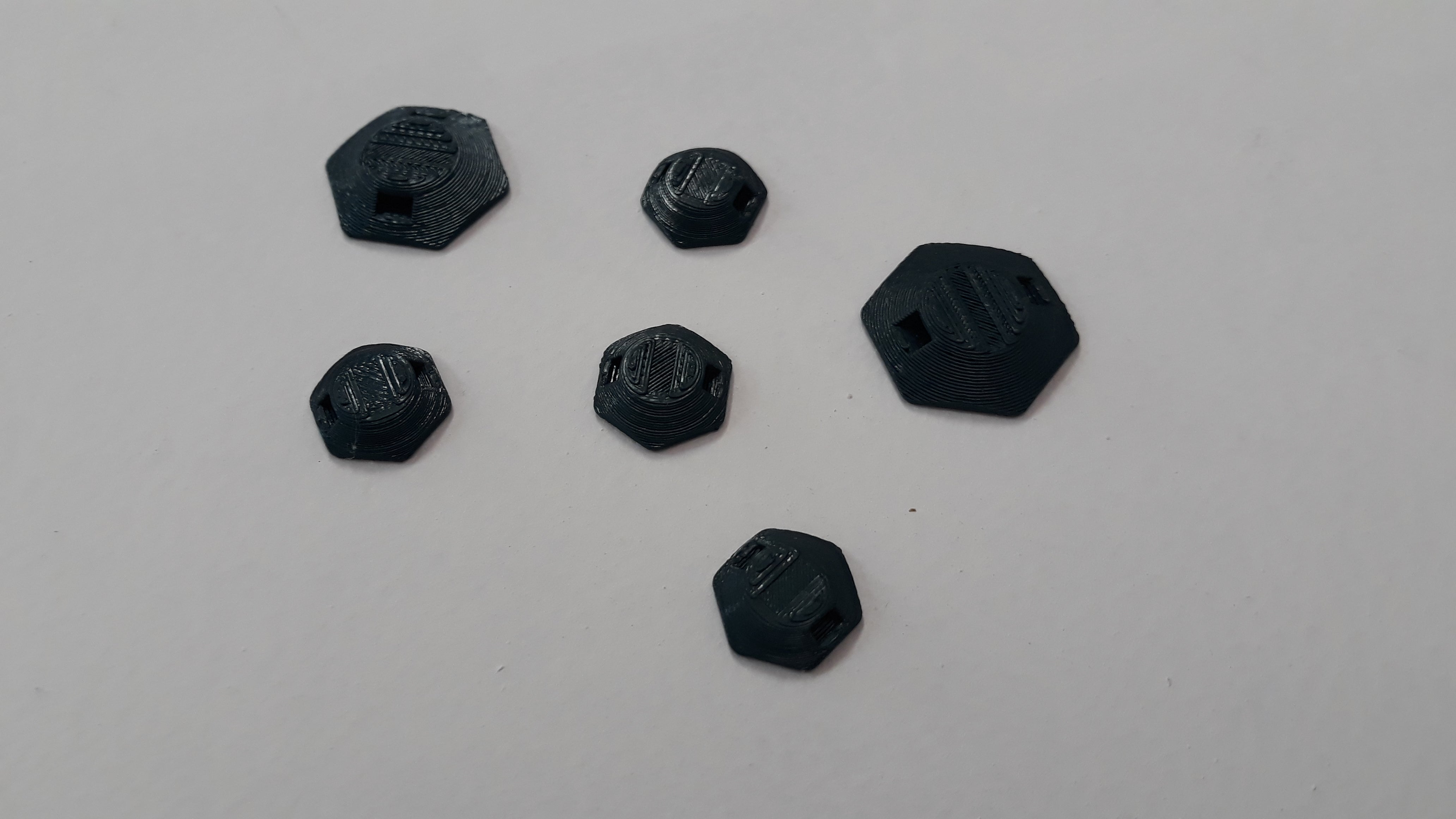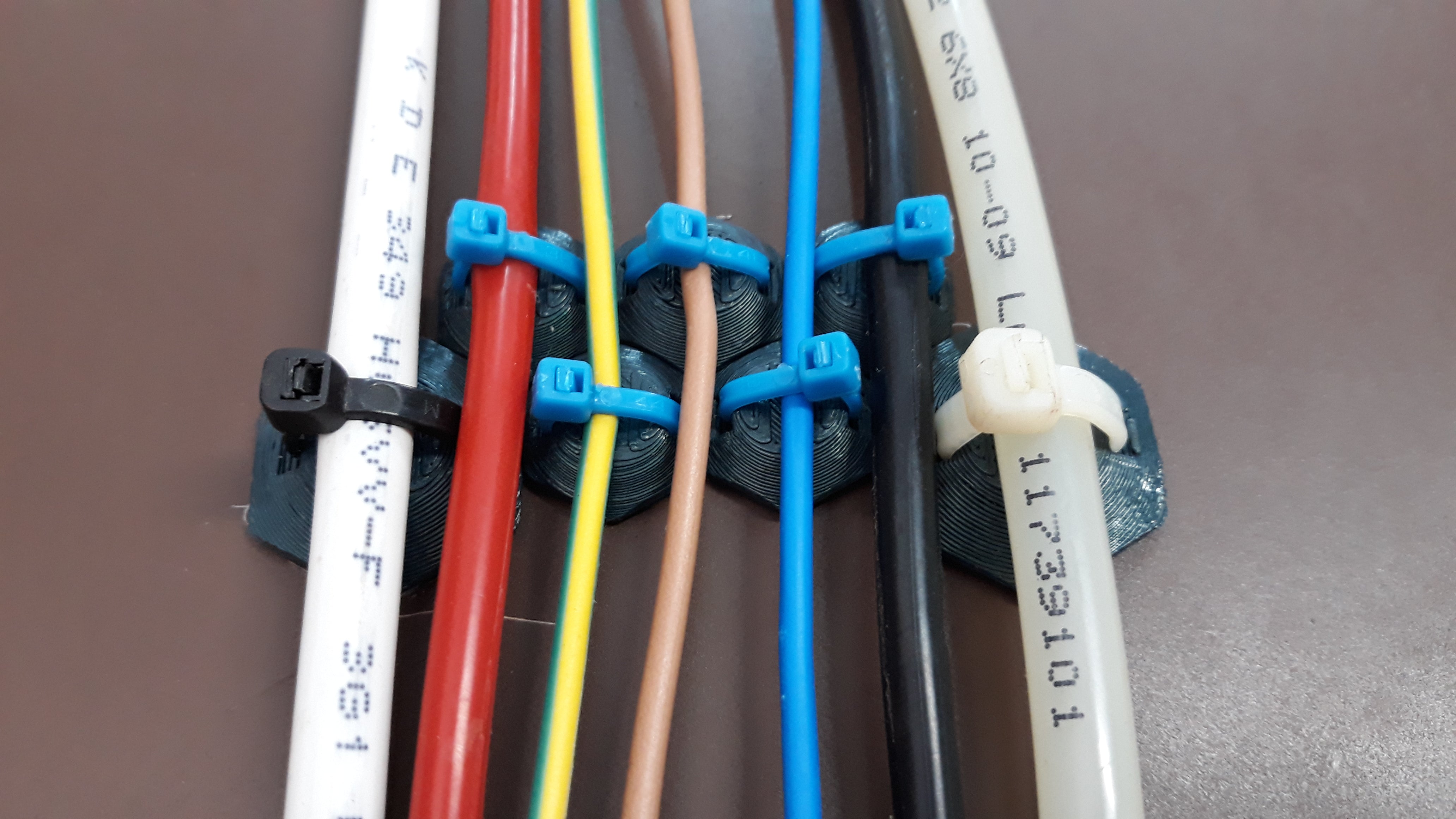 Hexagonale kabelclips voor het ordenen van kabels en leidingen. De clips kunnen van boven of van opzij worden ingestoken en vastgezet met dubbelzijdige tape, lijm, hete lijm, enz. Verkrijgbaar in twee verschillende maten (klein, groot) en ze ondersteunen verschillende maten kabelbinders. Ze kunnen worden bedrukt op elk materiaal dat aan je wensen voldoet en er kunnen veel eenheden tegelijk worden bedrukt. De prijs per eenheid varieert tussen 0,1-0,2€/$, afhankelijk van het materiaal en de grootte.